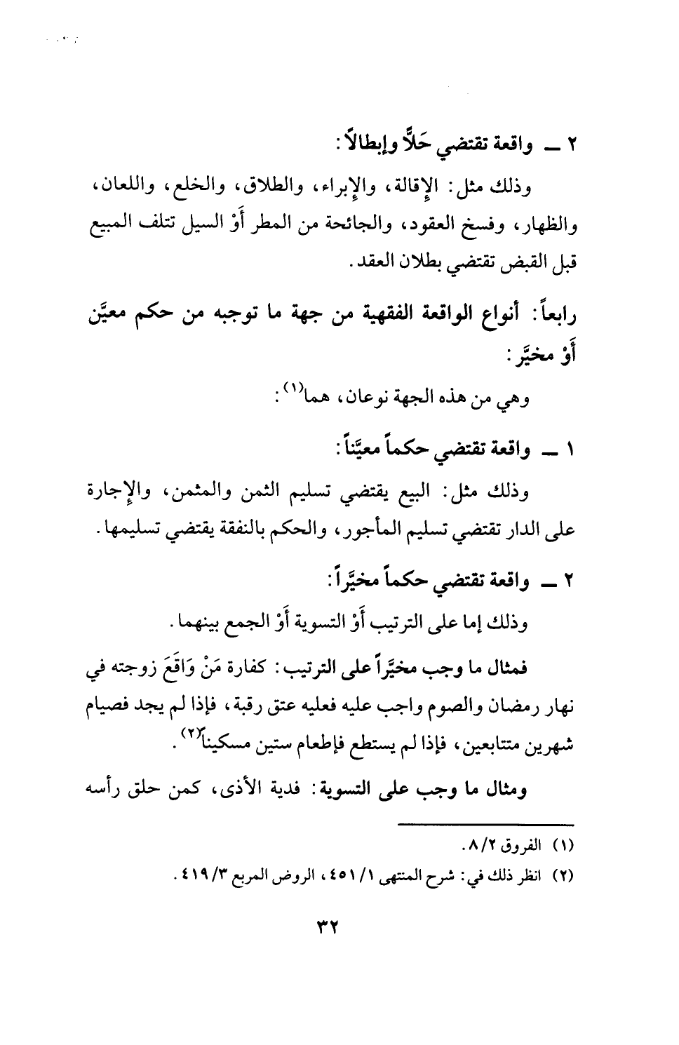 رابعًا: أنواع الواقعة الفقهية من جهة ما توجبه من حكم معيَّن أَوْ مخيَّر: