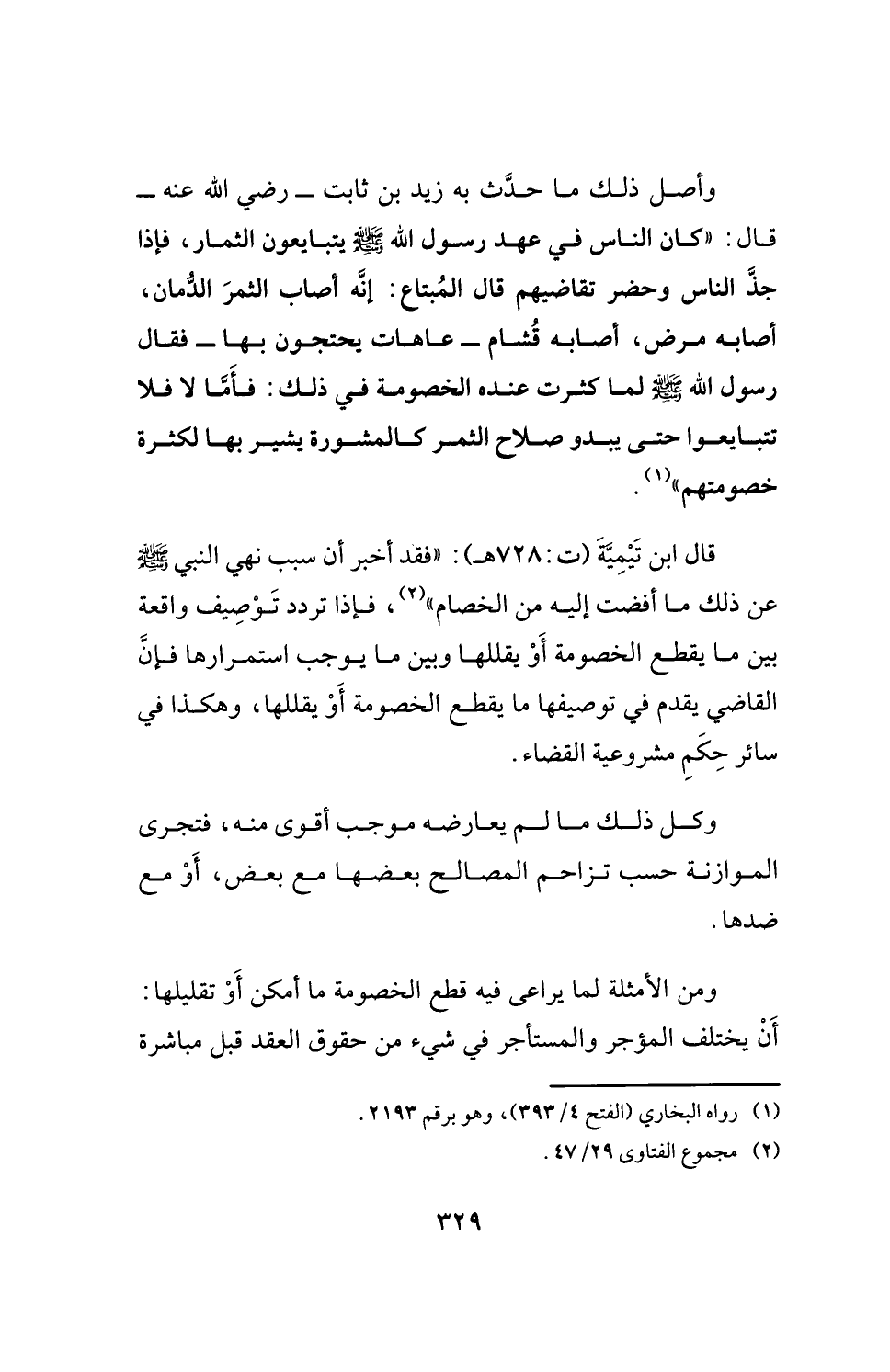 قال ابن تَيْمِيَّةَ (ت: 728 هـ): "فقد أخبر أن سبب نهي النبي - صلى الله عليه وسلم - عن ذلك ما أفضت إليه من الخصام" (¬2)، فإذا تردد تَوْصِيف واقعة بين ما يقطع الخصومة أَوْ يقللها وبين ما يوجب استمرارها فإنَّ القاضي يقدم في توصيفها ما يقطع الخصومة أَوْ يقللها، وهكذا في سائر حِكَمِ مشروعية القضاء.