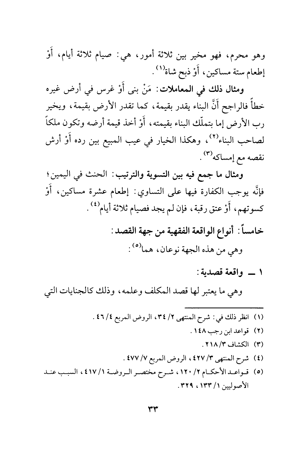 خامسًا: أنواع الواقعة الفقهية من جهة القصد: