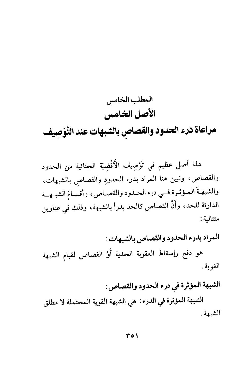 المطلب الخامس الأصل الخامس مراعاة درء الحدود والقصاصِ بالشبهات عند التَّوْصِيف