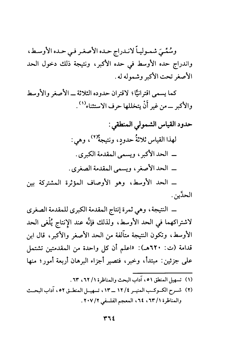 (¬2) شرح الكوكب المنير 4/ 12 - 13، تسهيل المنطق 52، آداب البحث والمناظرة 1/ 63، 64، المعجم الفلسفي 2/ 207.