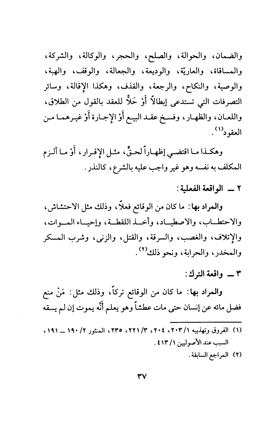 (¬1) الفروق وتهذيبه 1/ 203، 204، 3/ 221، 235، المنثور 2/ 190 - 191، السبب عند الأصوليين 1/ 413.