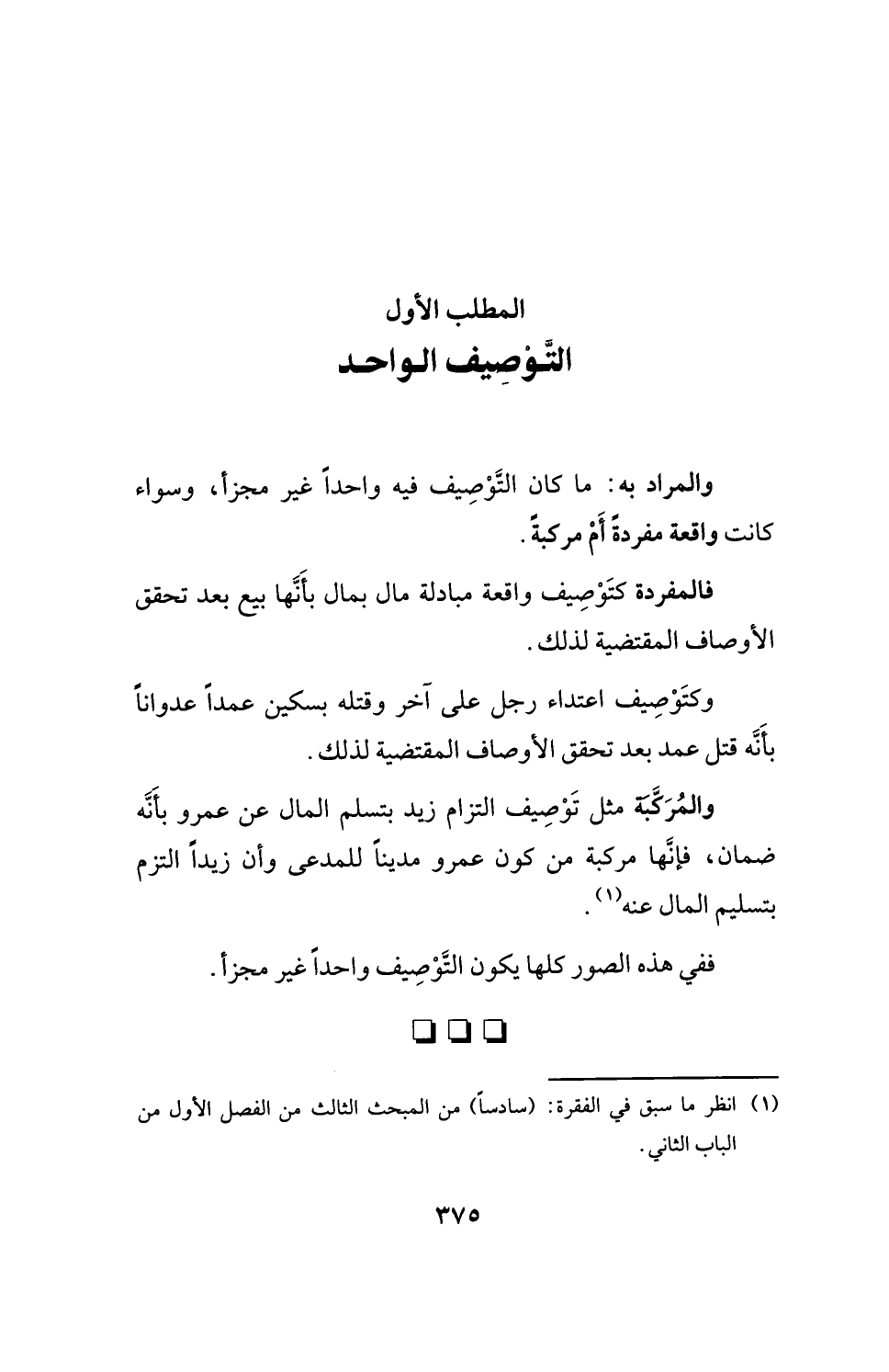 والمراد به: ما كان التَّوْصِيف فيه واحدًا غير مجزأ، وسواء كانت واقعة مفردةً أَم مركبةً.