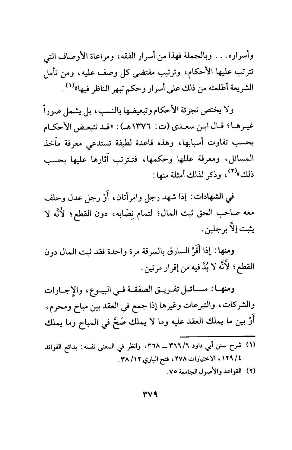 ولا يختص تجزئة الأحكام وتبعيضها بالنسب، بل يشمل صورًا غيرها؛ قال ابن سعدى (ت: 1376 هـ): "قد تتبعض الأحكام بحسب تفاوت أسبابها، وهذه قاعدة لطيفة تستدعي معرفة مآخذ المسائل، ومعرفة عللها وحكمها، فتترتب آثارها عليها بحسب ذلك" (¬2)، وذكر لذلك أمثلة منها: