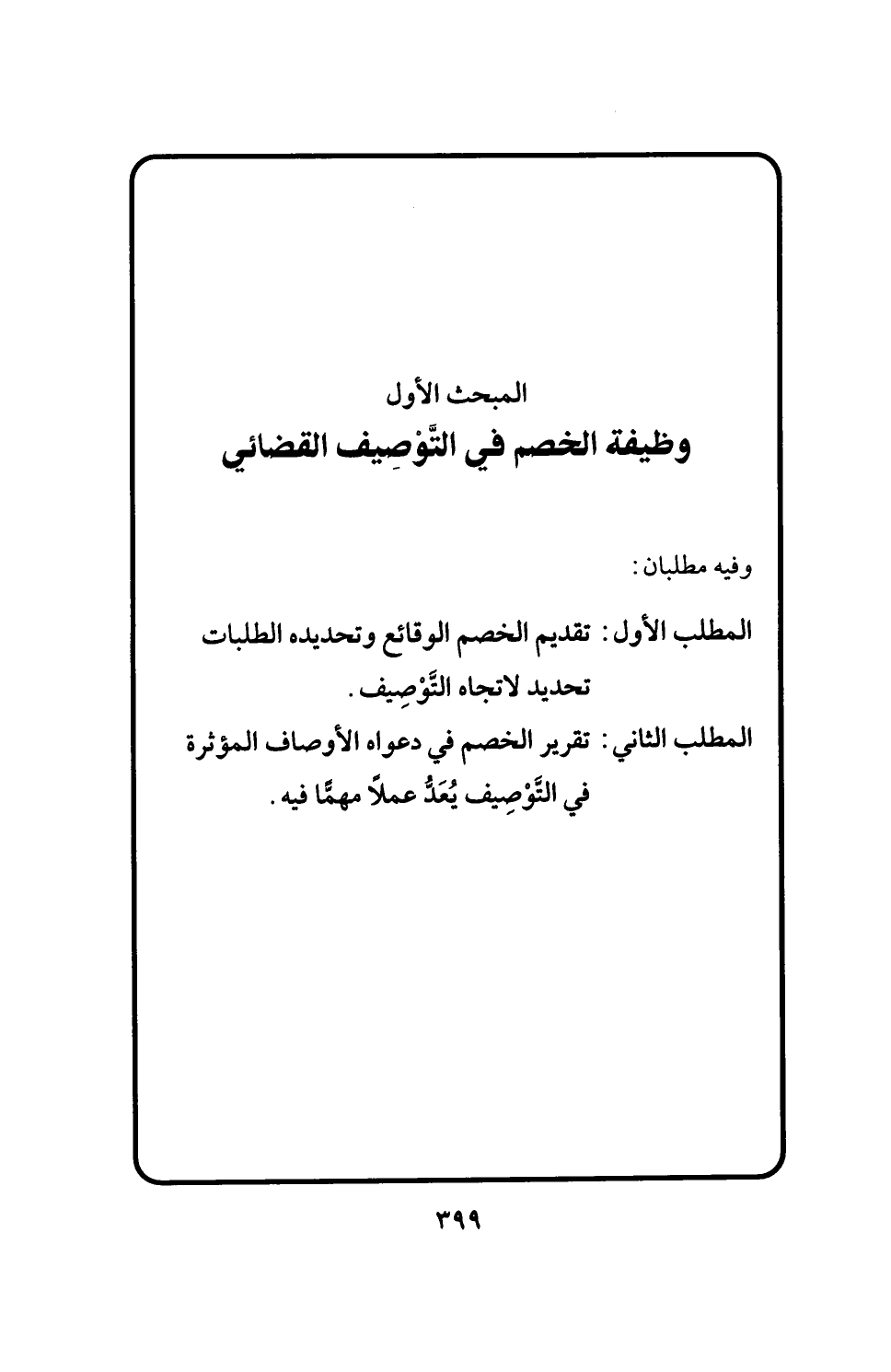 المبحث الأول وظيفة الخصم في التَّوْصِيف القضائي