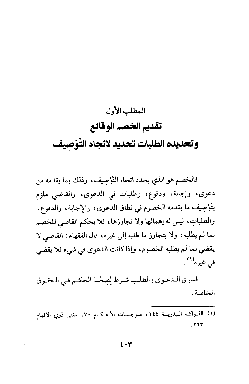 المطلب الأول تقديم الخصم الوقائع وتحديده الطلبات تحديد لاتجاه التَّوْصِيف