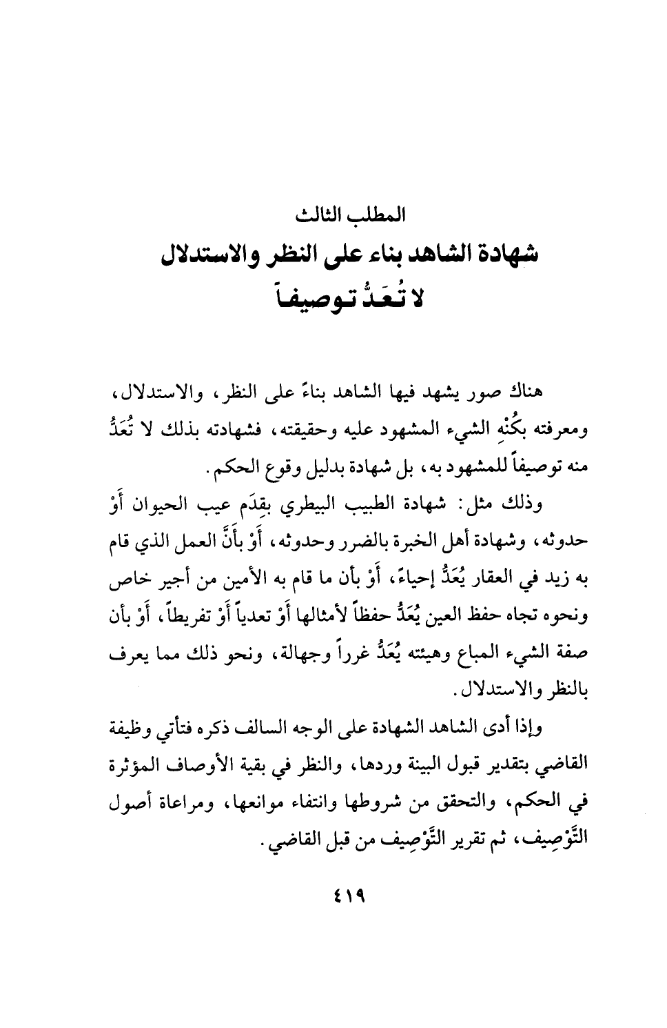 المطلب الثالث شهادة الشاهد بناء على النظر والاستدلال لا تُعَدُّ توصيفًا