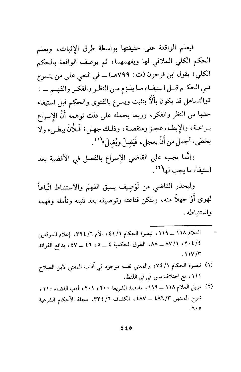 (¬1) تبصرة الحكام 1/ 74، والمعنى نفسه موجود في آداب المفتي لابن الصلاح 111، مع اختلاف يسير في في اللفظ.