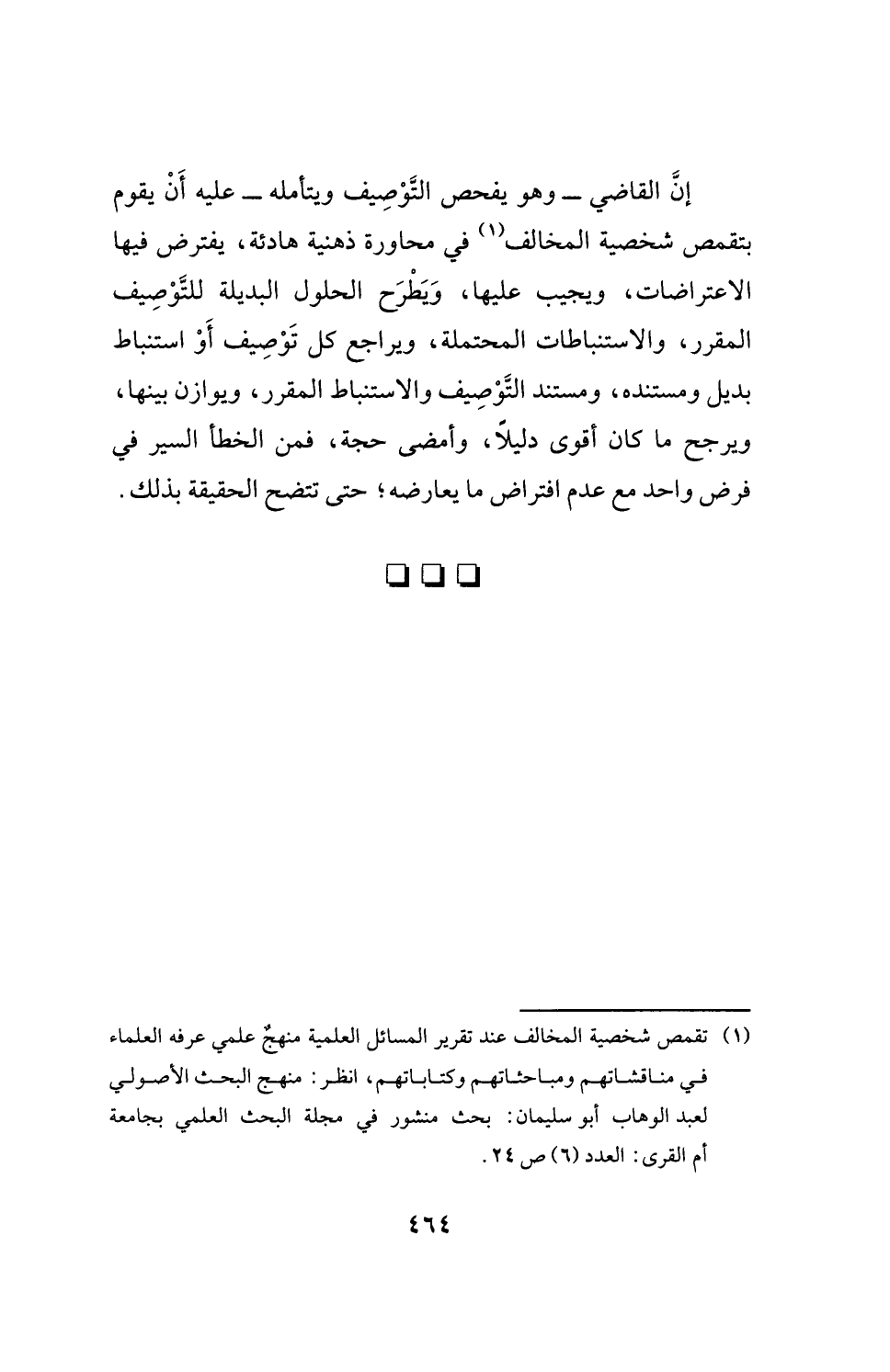 (¬1) تقمص شخصية المخالف عند تقرير المسائل العلمية منهجٌ علمي عرفه العلماء في مناقشاتهم ومباحثاتهم وكتاباتهم، انظر: منهج البحث الأصولي لعبد الوهاب أبو سليمان: بحث منشور في مجلة البحث العلمي بجامعة أم القرى: العدد (6) ص 24.