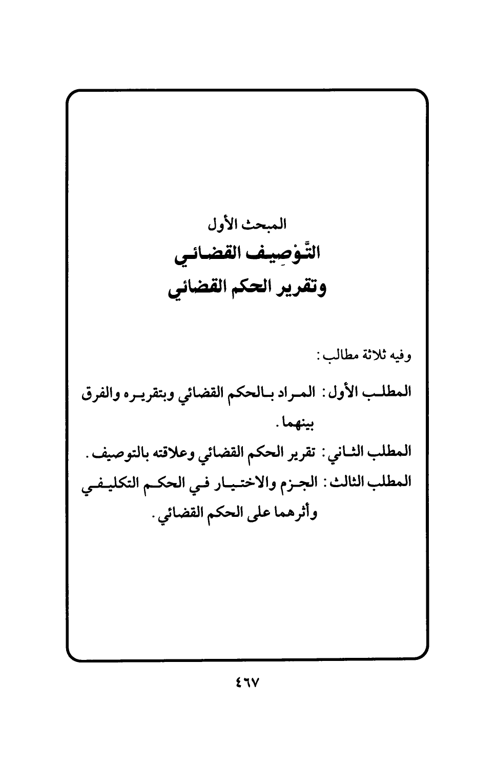 المبحث الأول التَّوْصِيف القضائي وتقرير الحكم القضائي