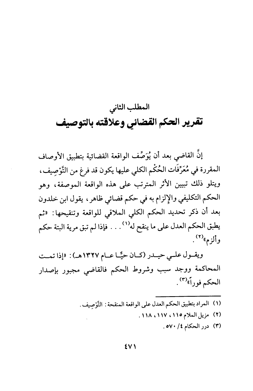 ويقول علي حيدر (كان حيًّا عام 1327 هـ): "إذا تمت المحاكمة ووجد سبب وشروط الحكم فالقاضي مجبور بإصدار الحكم فورًا" (¬3).