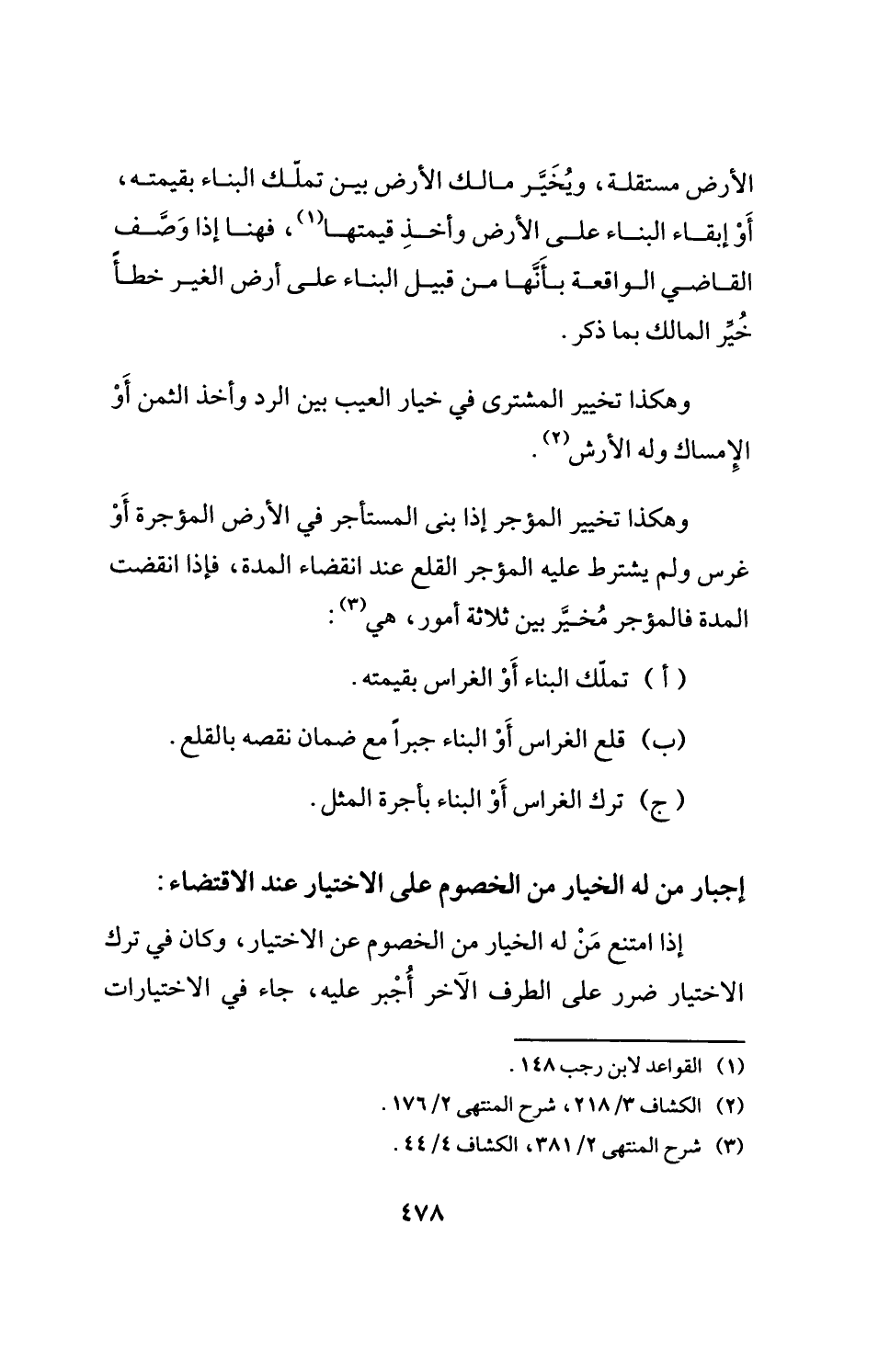 وهكذا تخيير المؤجر إذا بنى المستأجر في الأرض المؤجرة أَوْ غرس ولم يشترط عليه المؤجر القلع عند انقضاء المدة، فإذا انقضت المدة فالمؤجر مُخيَّر بين ثلاثة أمور، هي (¬3):
