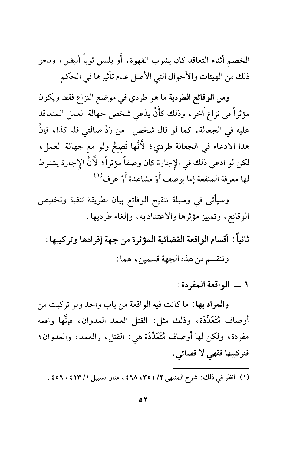 ثانيًا: أقسام الواقعة القضائية المؤثرة من جهة إفرادها وتركيبها:
