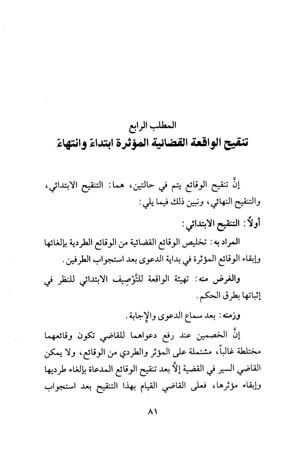 المطلب الرابع تنقيح الواقعة القضائية المؤثرة ابتداءً وانتهاءً