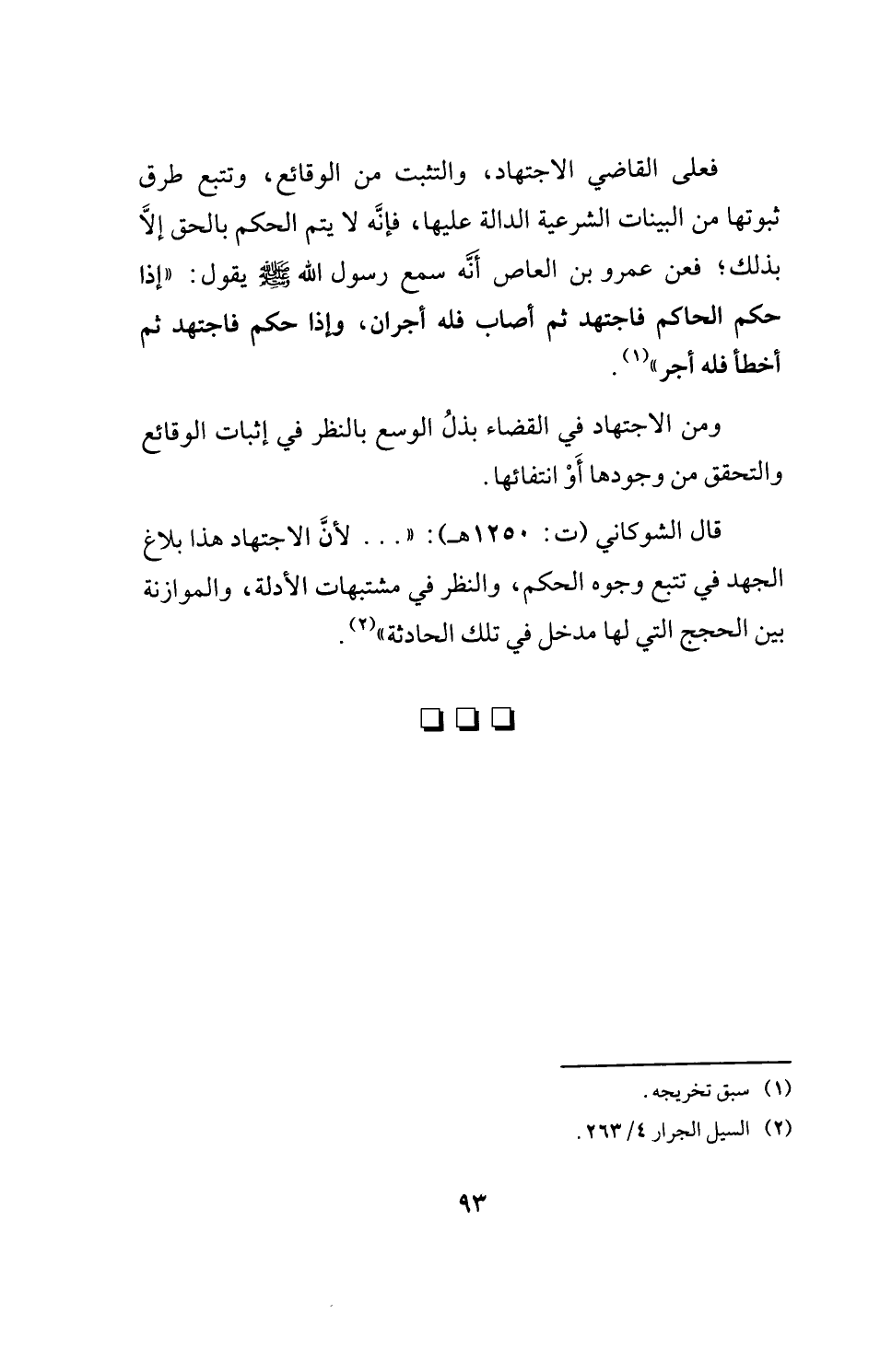 ومن الاجتهاد في القضاء بذلُ الوسع بالنظر في إثبات الوقائع والتحقق من وجودها أَوْ انتفائها.