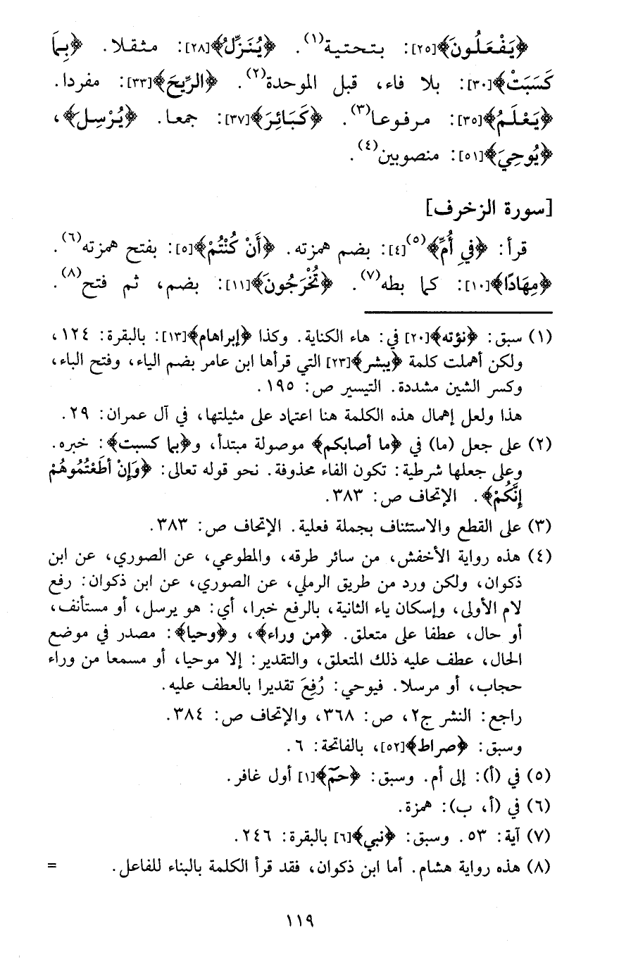 {يعلم} : مَرْفُوعا. {كَبَائِر} : جمعا. {يُرْسل} ، {يوحي} : منصوبين. [