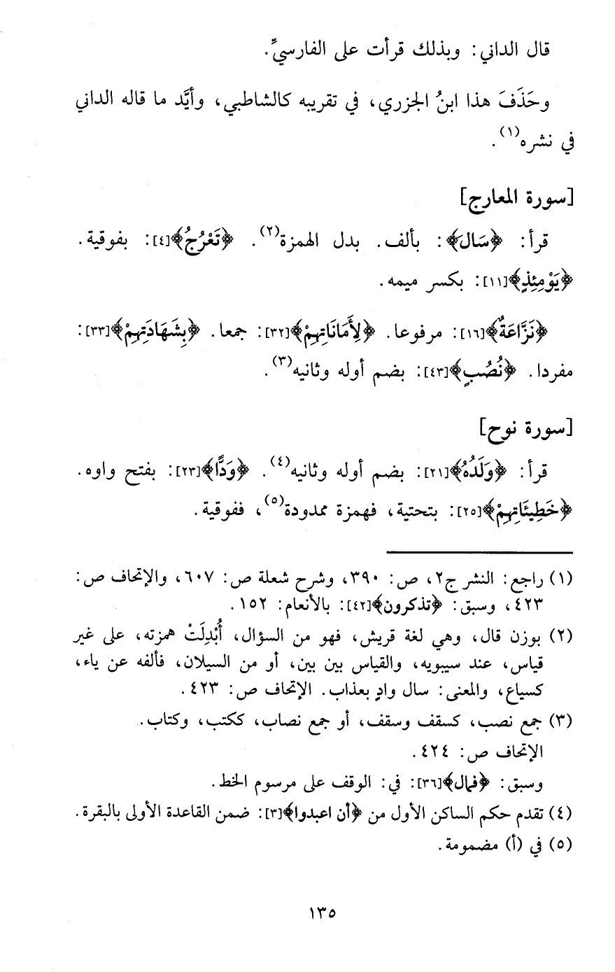 قَرَأَ: {سَالَ} : بِأَلف. بدل الْهمزَة. {تعرج} : بفوقية.