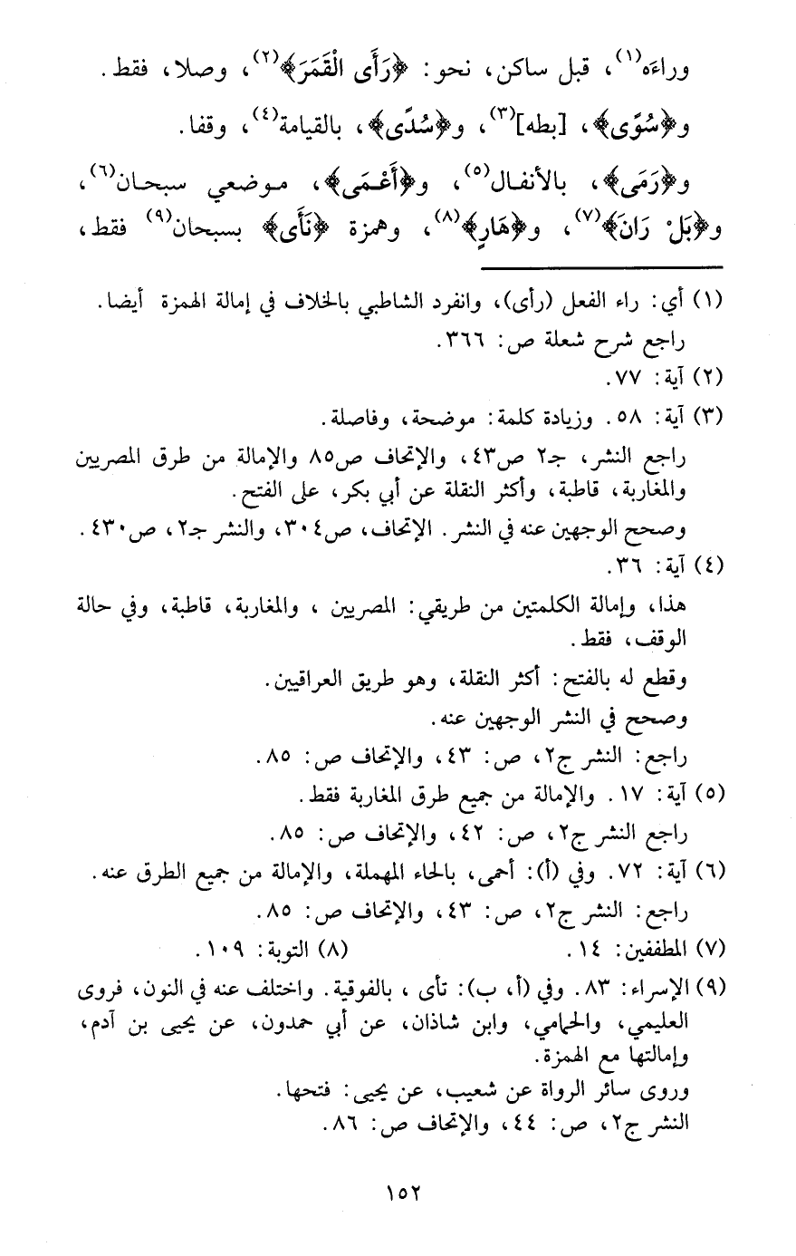 و {رمى} ، بالأنفال، و {أعمى} ، موضعي سُبْحَانَ، و {بل ران} ، و {هار} ، وهمزة {نأى} بسبحان فَقَط،