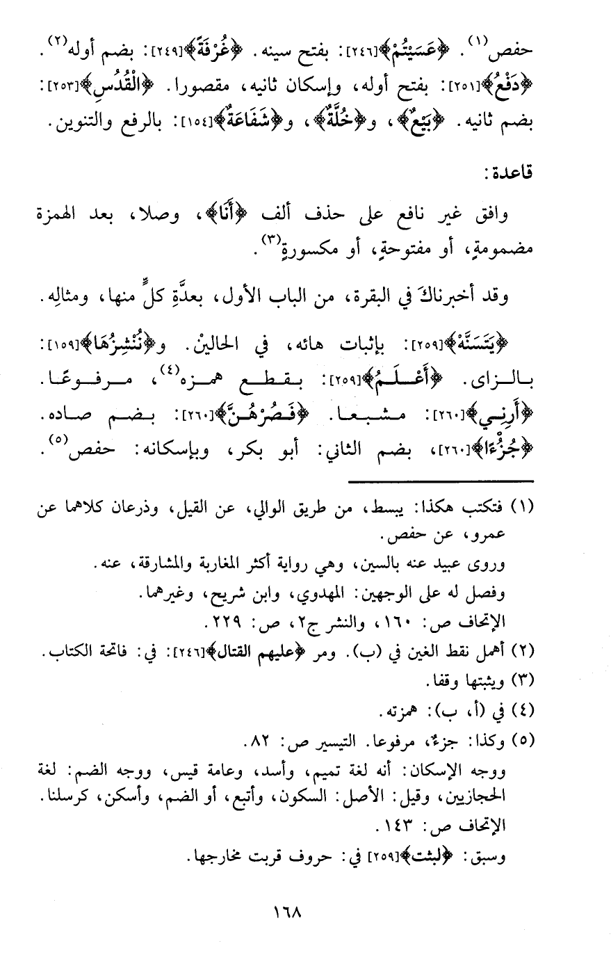 حَفْص. {عسيتم} : بِفَتْح سينه. {غرفَة} : بِضَم أَوله.