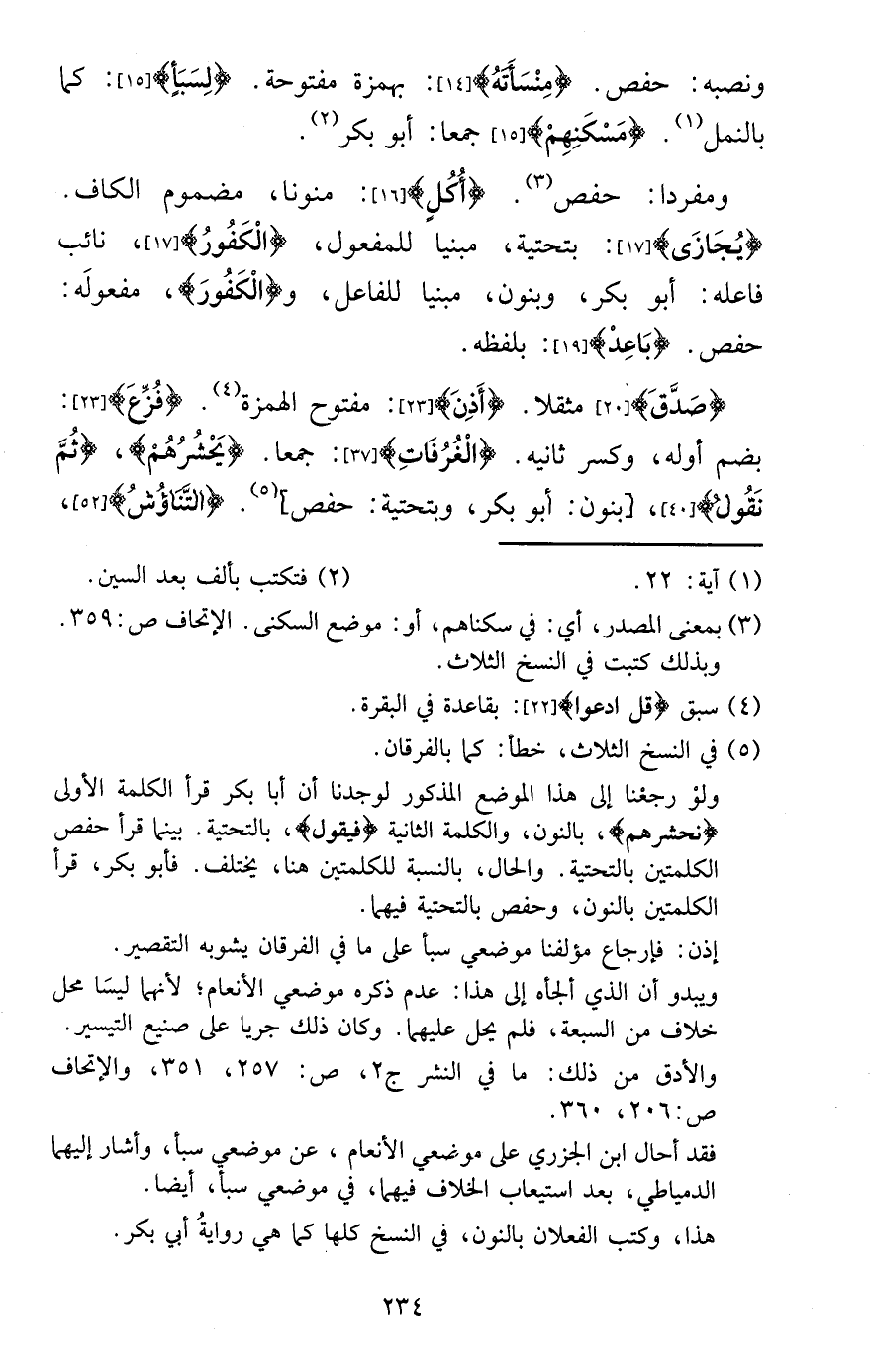 ونصبه: حَفْص. {منسأته} : بِهَمْزَة مَفْتُوحَة. {لسبأ} : كَمَا بالنمل. {مسكنهم} جمعا: أَبُو بكر.