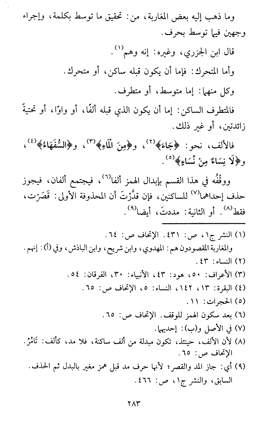 فالمتطرف السَّاكِن: إِمَّا أَن يكون الَّذِي قبله ألفا، أَو واواً، أَو تحتية زائدتين، أَو غير ذَلِك.