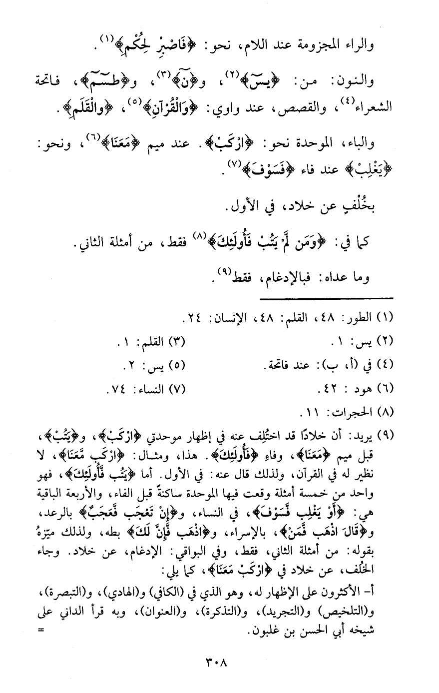 وَالنُّون: من: {يس} ، و {ن} ، و {طسم} ، فَاتِحَة الشُّعَرَاء، والقصص، عِنْد واوي: {وَالْقُرْآن} ، {والقلم} .