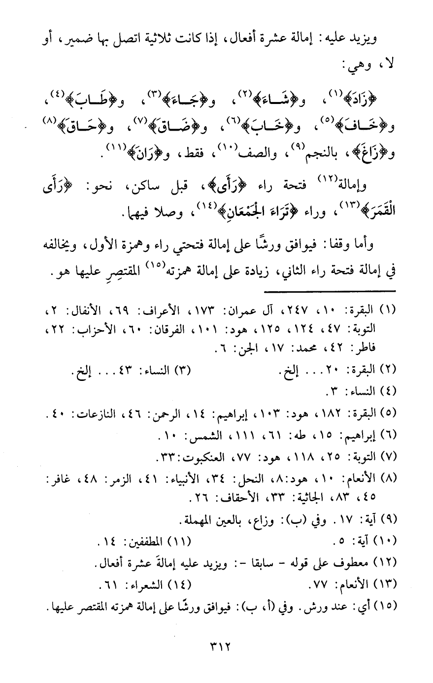 وَيزِيد عَلَيْهِ: إمالة عشرَة أَفعَال، إِذا كَانَت ثلاثية اتَّصل بهَا ضمير، أَو لَا، وَهِي: