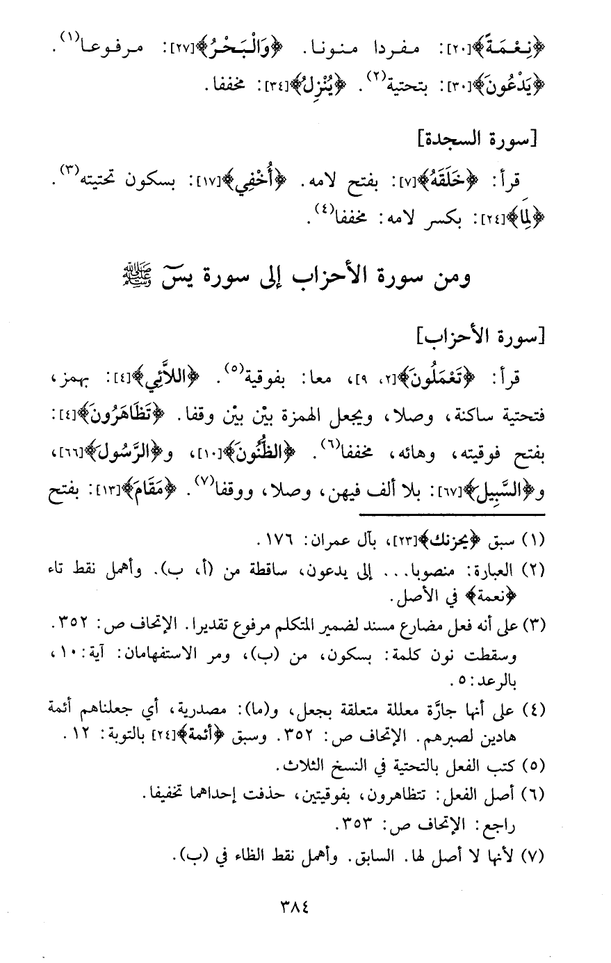 وَمن سُورَة الْأَحْزَاب إِلَى سُورَة يس - صَلَّى اللَّهُ عَلَيْهِ وَسَلَّم َ -