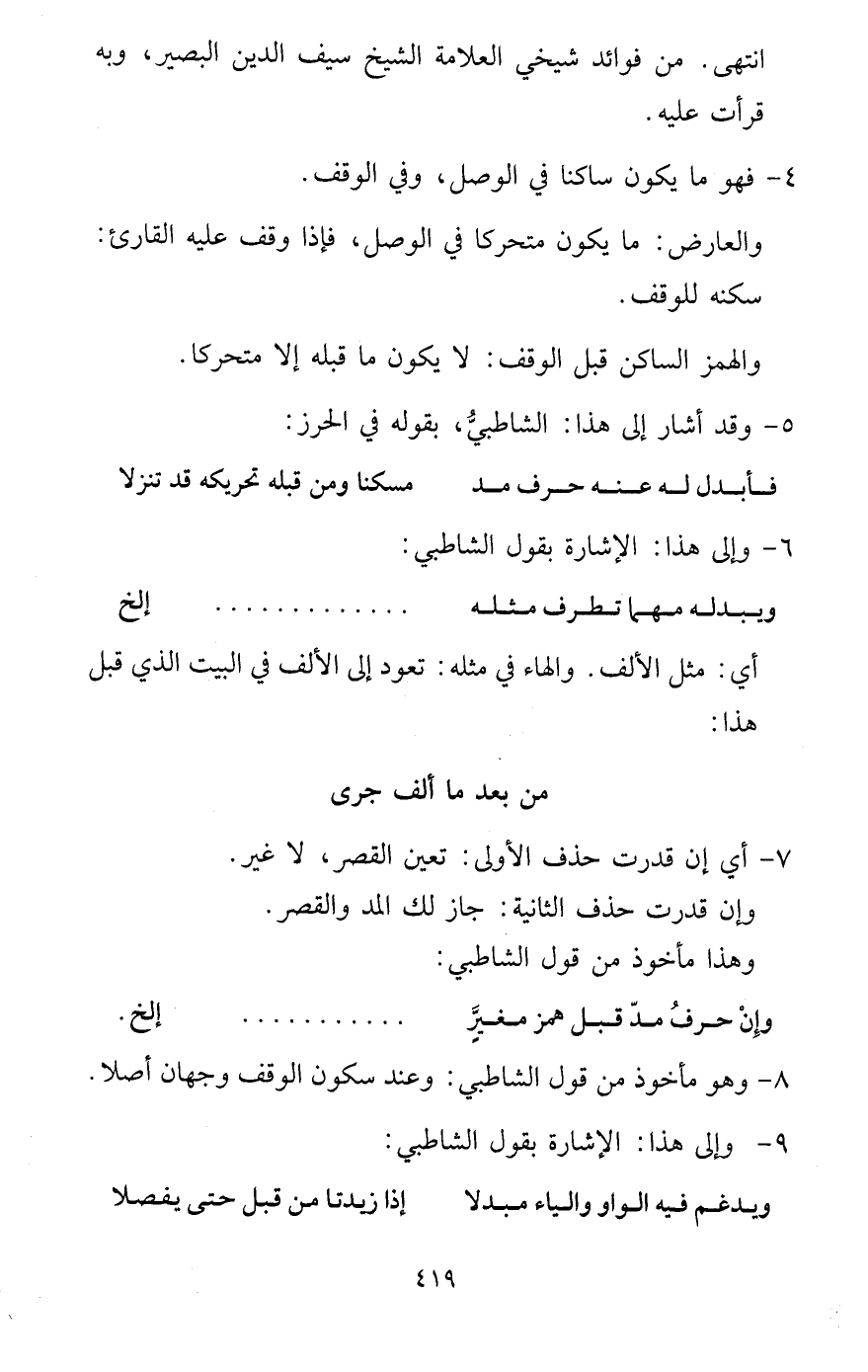 9 - وَإِلَى هَذَا: الْإِشَارَة بقول الشاطبي: