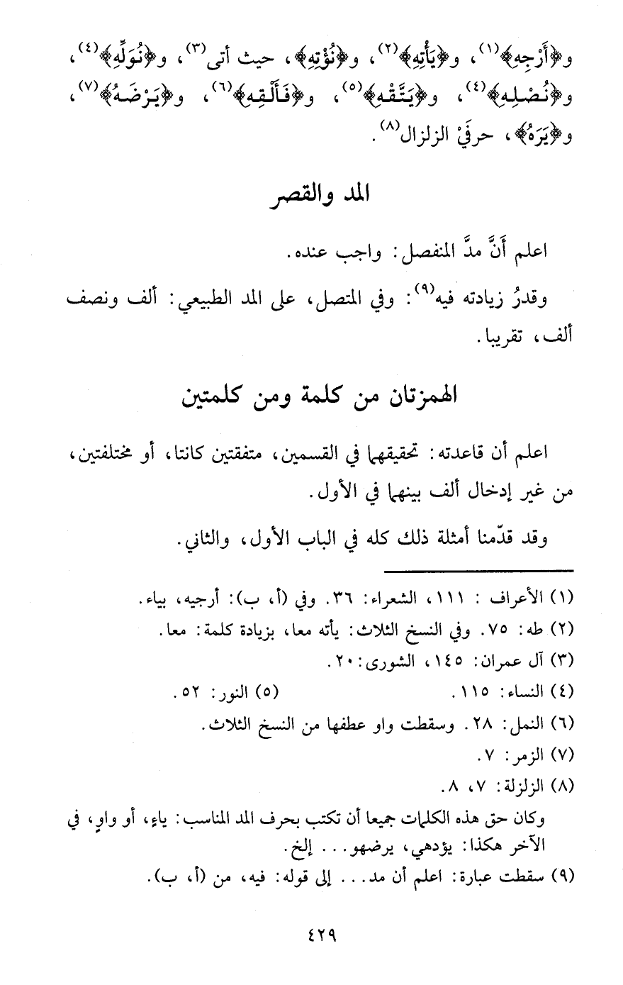 اعْلَم أَن مد الْمُنْفَصِل: وَاجِب عِنْده. وَقدر زِيَادَته فِيهِ: وَفِي الْمُتَّصِل، على الْمَدّ الطبيعي: ألف وَنصف ألف، تَقْرِيبًا.
