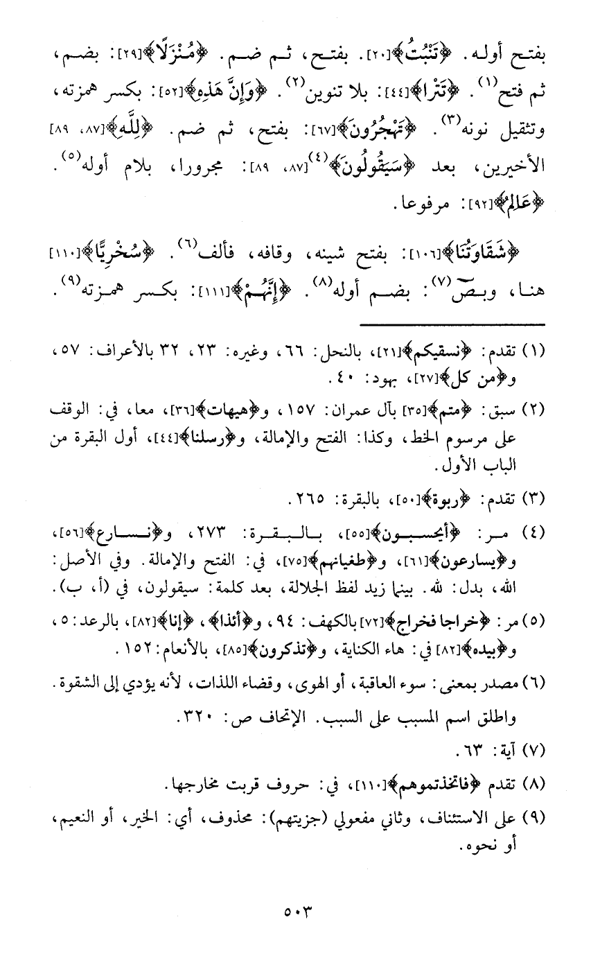 بِفَتْح أَوله. {تنْبت} . بِفَتْح، ثمَّ ضم. {منزلا} : بِضَم، ثمَّ فتح. {تترا} : بِلَا تَنْوِين. {وَإِن هَذِه} : بِكَسْر همزته، وتثقيل نونه. {تهجرون} : بِفَتْح، ثمَّ ضم. {لله} الْأَخيرينِ، بعد {سيقولون} : مجروراً، بلام أَوله. {عَالم} : مَرْفُوعا.