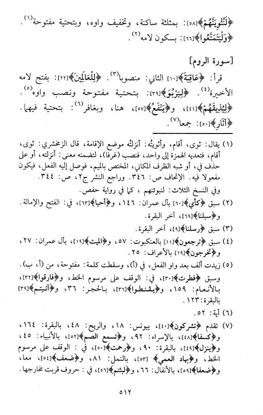 قَرَأَ: {عَاقِبَة} الثَّانِي: مَنْصُوبًا. {للْعَالمين} : بِفَتْح لامه الْأَخِيرَة. {ليربو} : بتحتية مَفْتُوحَة وَنصب واوه. {ليذيقهم} ، و {ينفع} ، هُنَا، وبغافر: بتحتية فيهمَا. {آثَار} : جمعا.