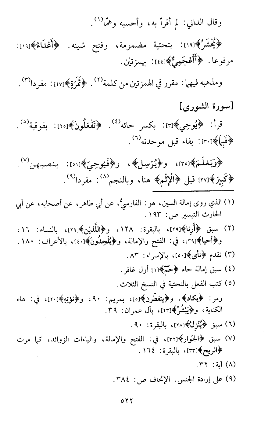 قَرَأَ: {يوحي} : بِكَسْر حائه. {تَفْعَلُونَ} : بفوقية. {فبمَا} : بفاء قبل موحدته.
