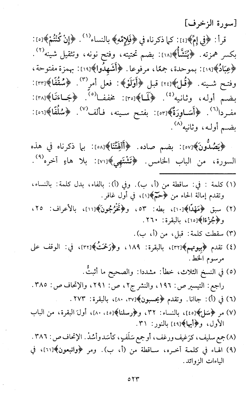 {يصدون} : بِضَم صَاده. {أآلهتنا} : بِمَا ذَكرْنَاهُ فِي هَذِه السُّورَة، من الْبَاب الْخَامِس. {تشْتَهي} : بِلَا هَاء آخِره.