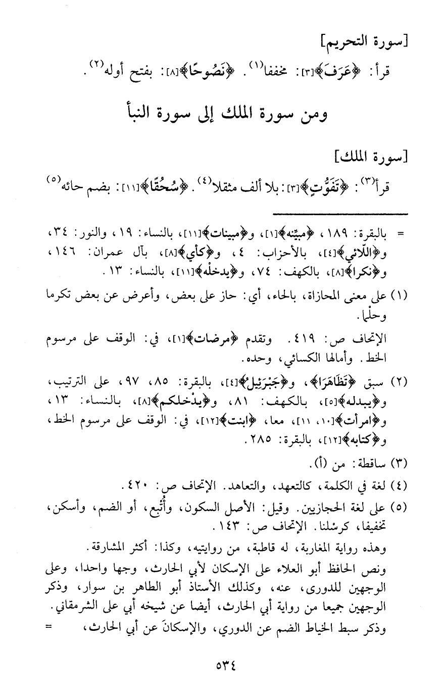 قَرَأَ: {عرف} : مخففا. {نصُوحًا} : بِفَتْح أَوله.