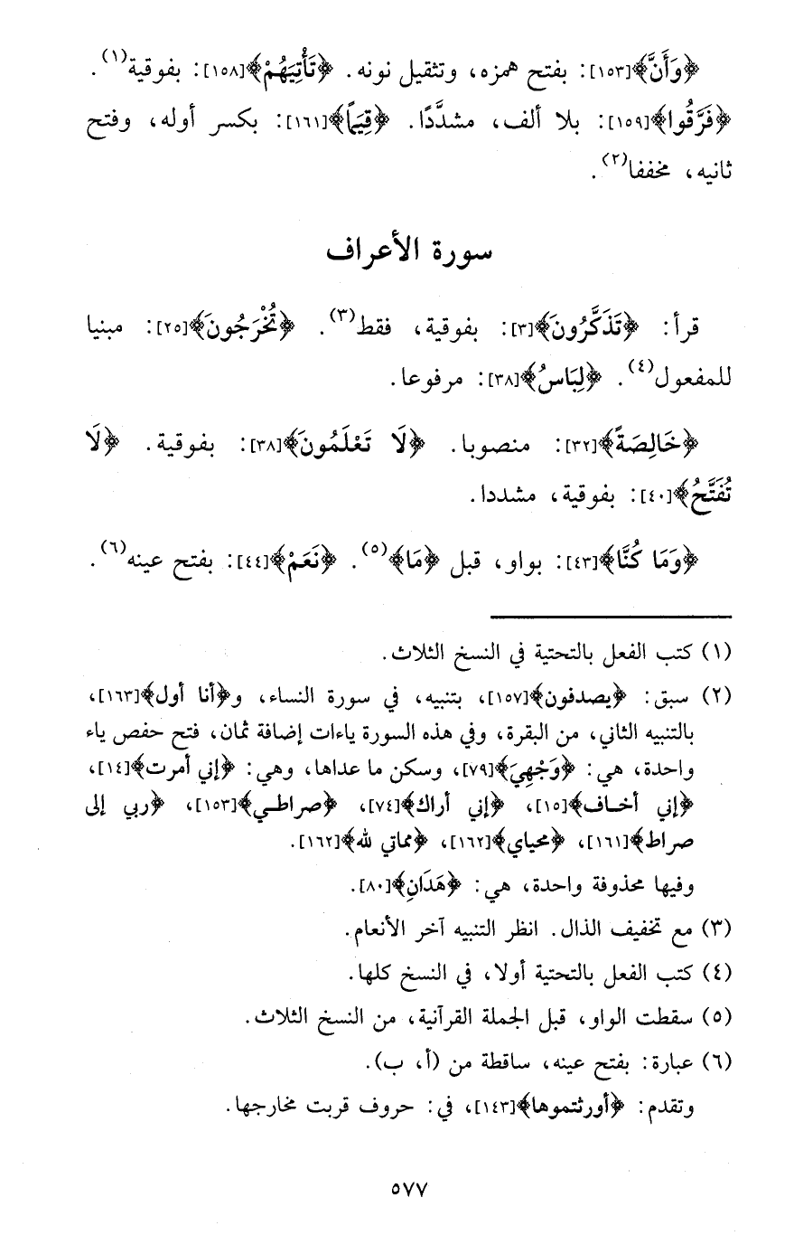 {وَأَن} : بِفَتْح همزه، وتثقيل نونه. {تأتيهم} : بفوقية. {فرقوا} : بِلَا ألف، مشددا. {قيمًا} : بِكَسْر أَوله، وَفتح ثَانِيه. مخففا.