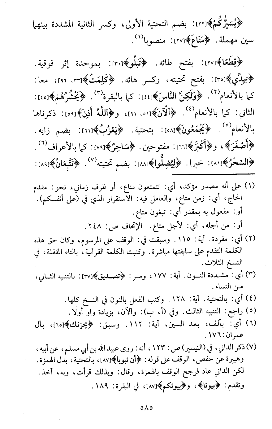 {يسيركم} : بِضَم التَّحْتِيَّة الأولى، وَكسر الثَّانِيَة الْمُشَدّدَة بَينهمَا سين مُهْملَة. {مَتَاع} : مَنْصُوبًا.