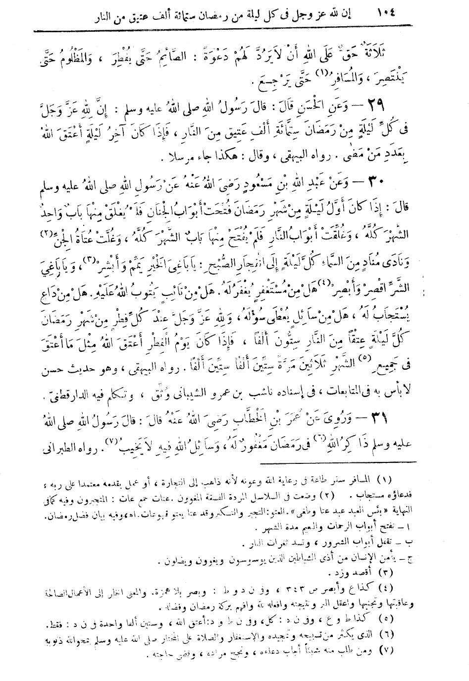 31 - وروي عن عمر بن الخطَّاب رضي الله عنه قال: قال رسول الله صلى الله عليه وسلم ذاكر الله (¬6) في رمضان مغفور له، وسائل الله فيه لا يخيب (¬7). رواه الطبراني