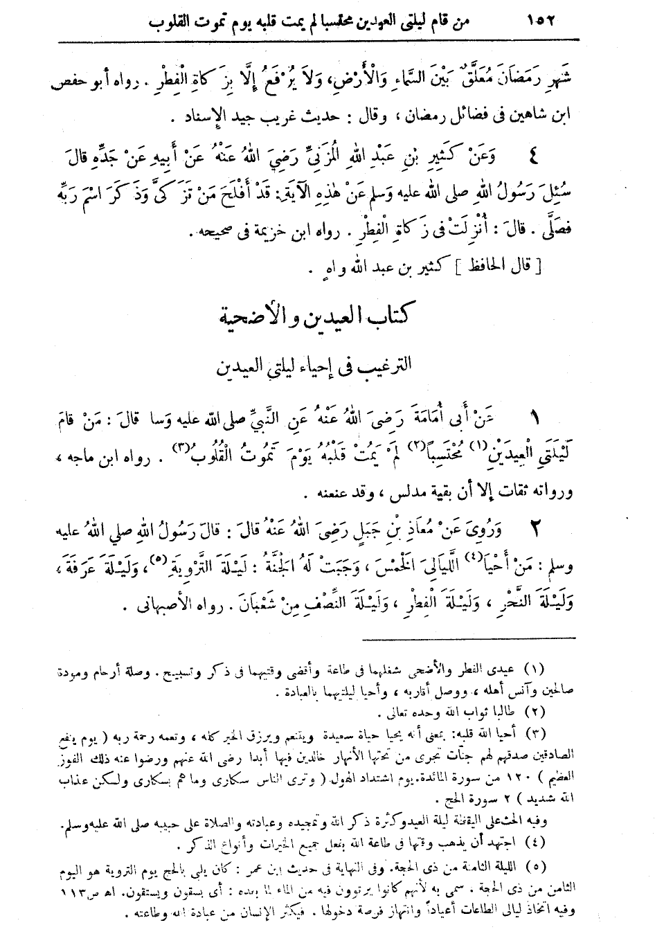 1 - عَن أبي أُمَامَة رَضِي الله عَنهُ عَن النَّبِي صلى الله عَلَيْهِ وَسلم قَالَ من قَامَ لَيْلَتي الْعِيدَيْنِ (¬1) محتسبا (¬2) لم يمت قلبه يَوْم تَمُوت الْقُلُوب (¬3)