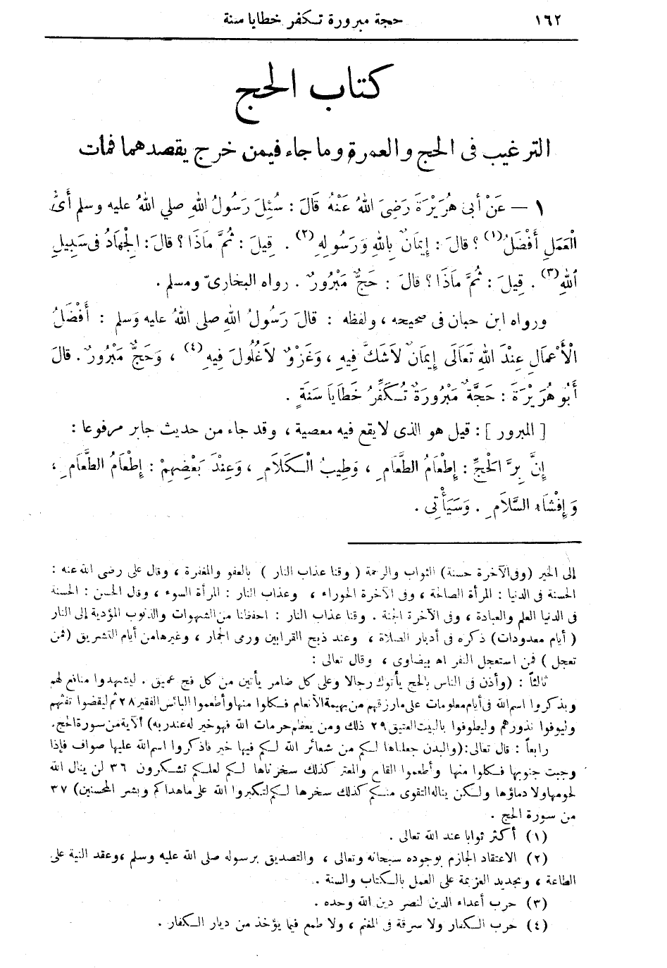 ورواه ابن حبان في صحيحه، ولفظه: قال رسول الله صلى الله عليه وسلم: أفضلُ الأعمالِ عندَ الله تعالى إيمانٌ لا شكَّ فيه، وغزوٌ لا غلول فيهِ (¬4)، وحجٌّ مبرورٌ. قال أبو هريرة: حجَّة تُكفِّرُ خطايا سنةٍ.