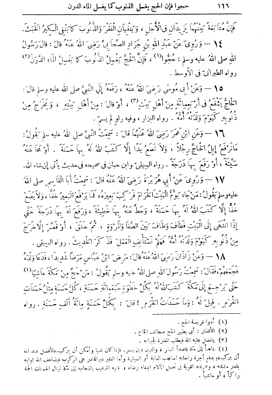 14 - وروي عن عبد الله بن جرادٍ الصَّحابي رضي الله عنه قال: قال رسول الله صلى الله عليه وسلم: حجُّوا (¬1)، فإنَّ الحجَّ يغسل الذنوب كما يغسل الماء الدَّرن (¬2). رواه الطبراني في الأوسط.