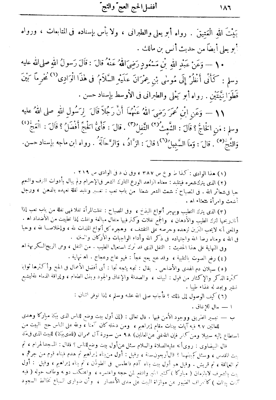 11 - وعن ابن عمر رضي الله عنهما أنَّ رجلا قال: لرسول الله صلى الله عليه وسلم: من الحاجُّ؟ قال: الشَّعث (¬2) التَّفل (¬3). قال: فأيُّ الحجِّ أفضل؟ قال: العجُّ (¬4) والثَّجُّ (¬5). قال: وما السبيل (¬6)؟