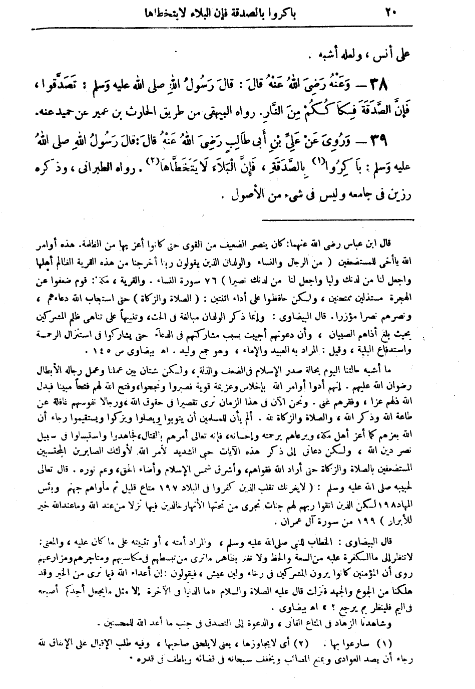 39 - وروى عنْ عليِّ بن أبي طالبٍ رضي الله عنه قال: قال رسول الله صلى الله عليه وسلم: باكروا (¬1) بالصدقة، فإن البلاء لا يتخطَّاها (¬2) رواه الطبراني، وذكره رزين في جامعة وليس في شيء من الأصول.