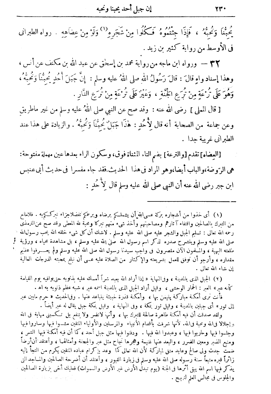 (قال المملي) رضي الله عنه: وقد صح عن النبي صلى الله عليه وسلم من غير ما طريقٍ وعن جماعة من الصحابة أنه قال لأحدٍ: هذا جبلٌ يُحبنا ونحبُّه. والزيادة على هذا عند الطبراني غريبة جدا.