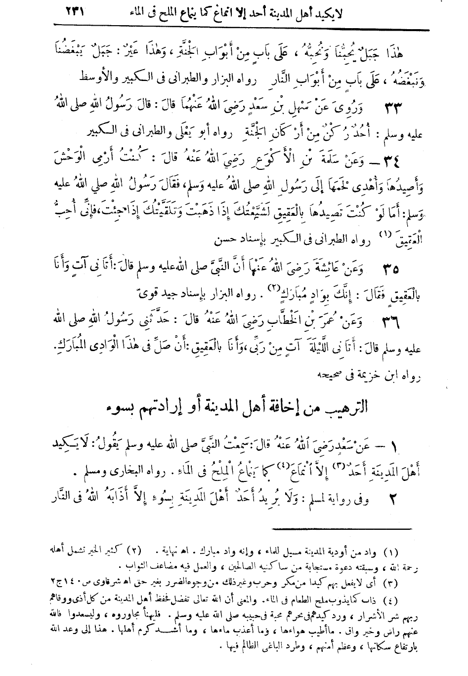 (الترهيب من إخافة أهل المدينة أو إرادتهم بسوء)