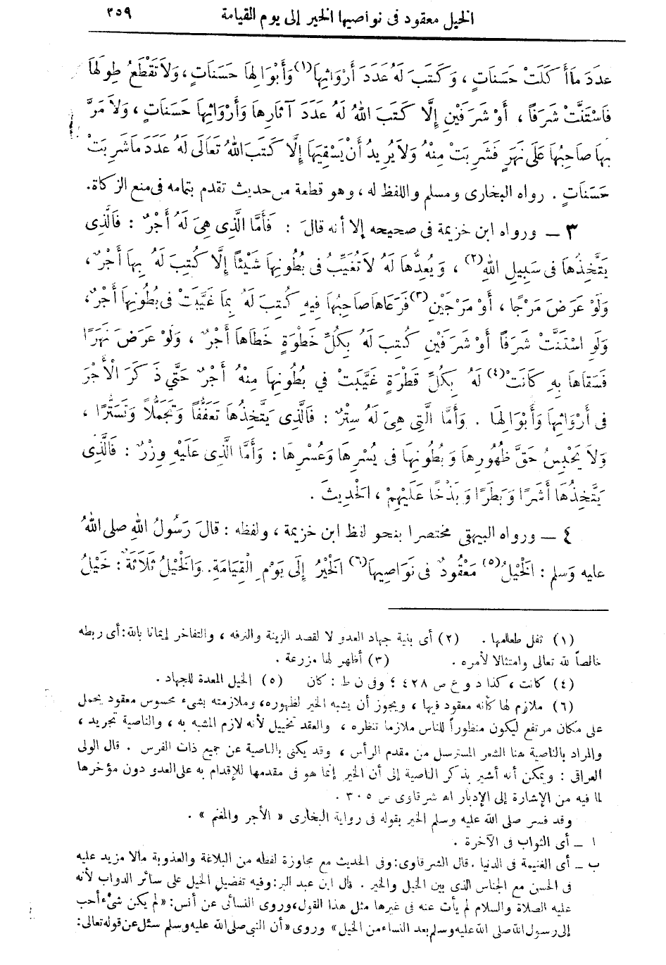 4 - ورواه البيهقي مختصرا بنحو لفظ ابن خزيمة، ولفظه: قال رسول الله صلى الله عليه وسلم: الخيل (¬5) معقود في نواصيها (¬6)