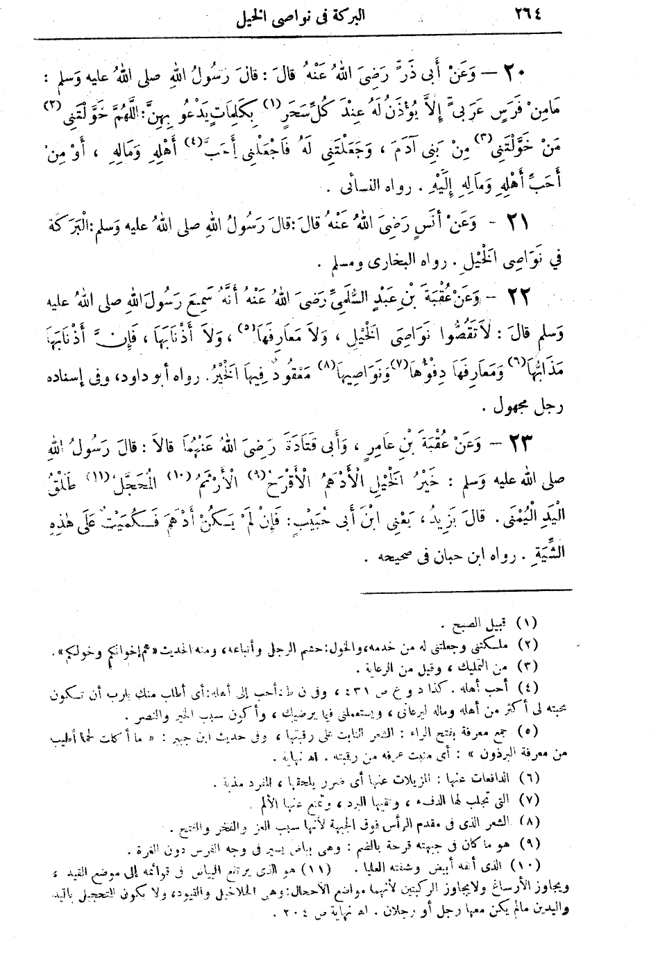 21 - وعنْ أنسٍ رضي الله عنه قال: قال رسول الله صلى الله عليه وسلم: البركة في نواصي الخيل. رواه البخاري ومسلم.
