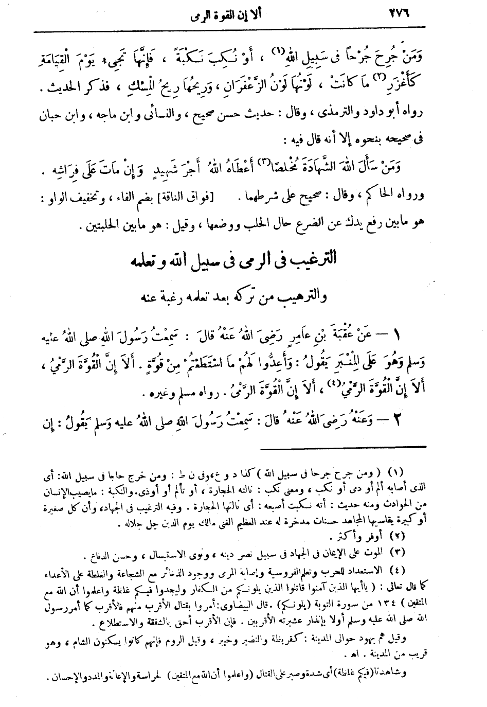 (الترغيب في الرمي في سبيل الله وتعلمه والترهيب من تركه بعد تعلمه رغبة عنه)