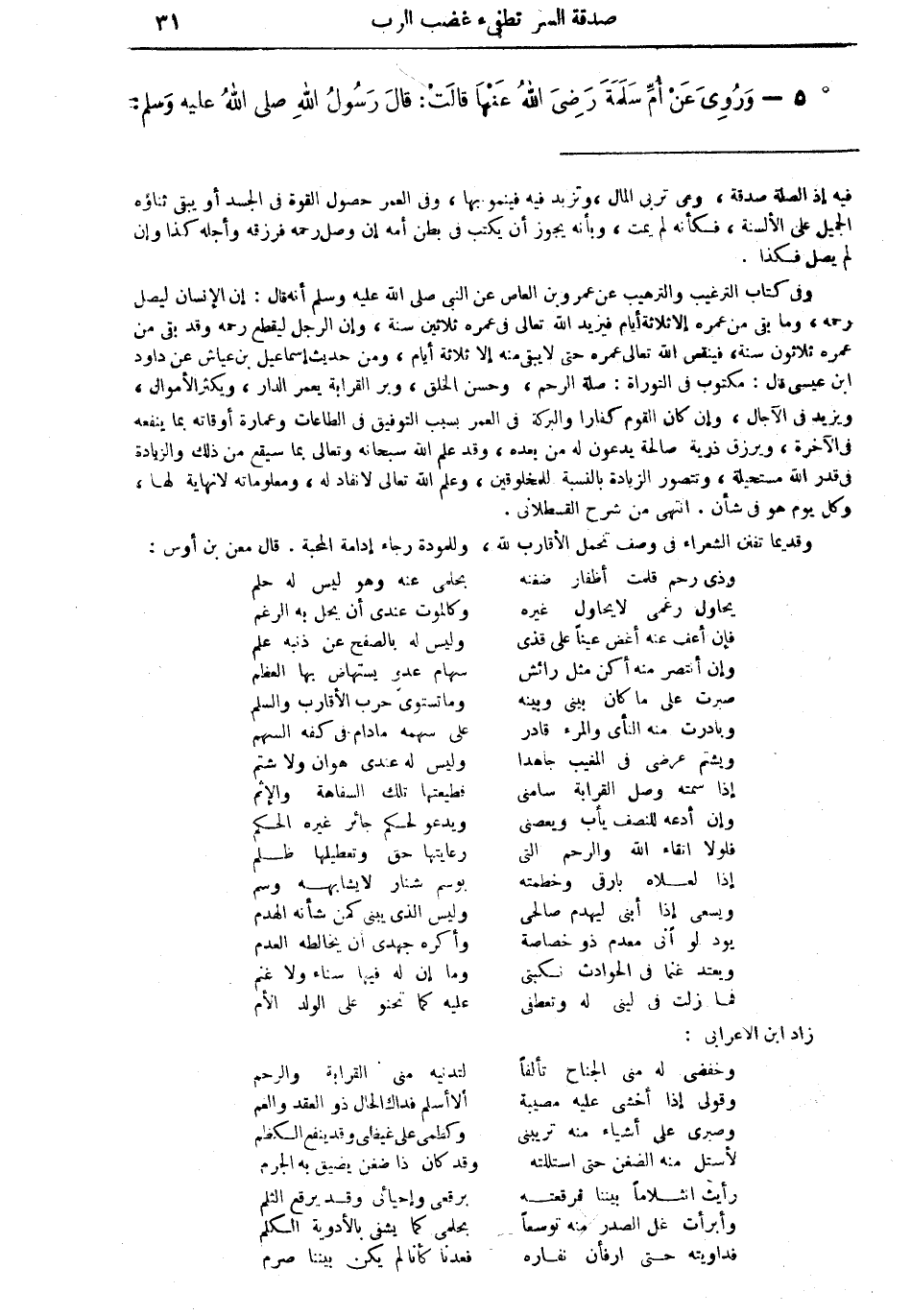 5 - وروي عن أمِّ سلمة رضي الله عنها قالت: قال رسول الله صلى الله عليه وسلم: