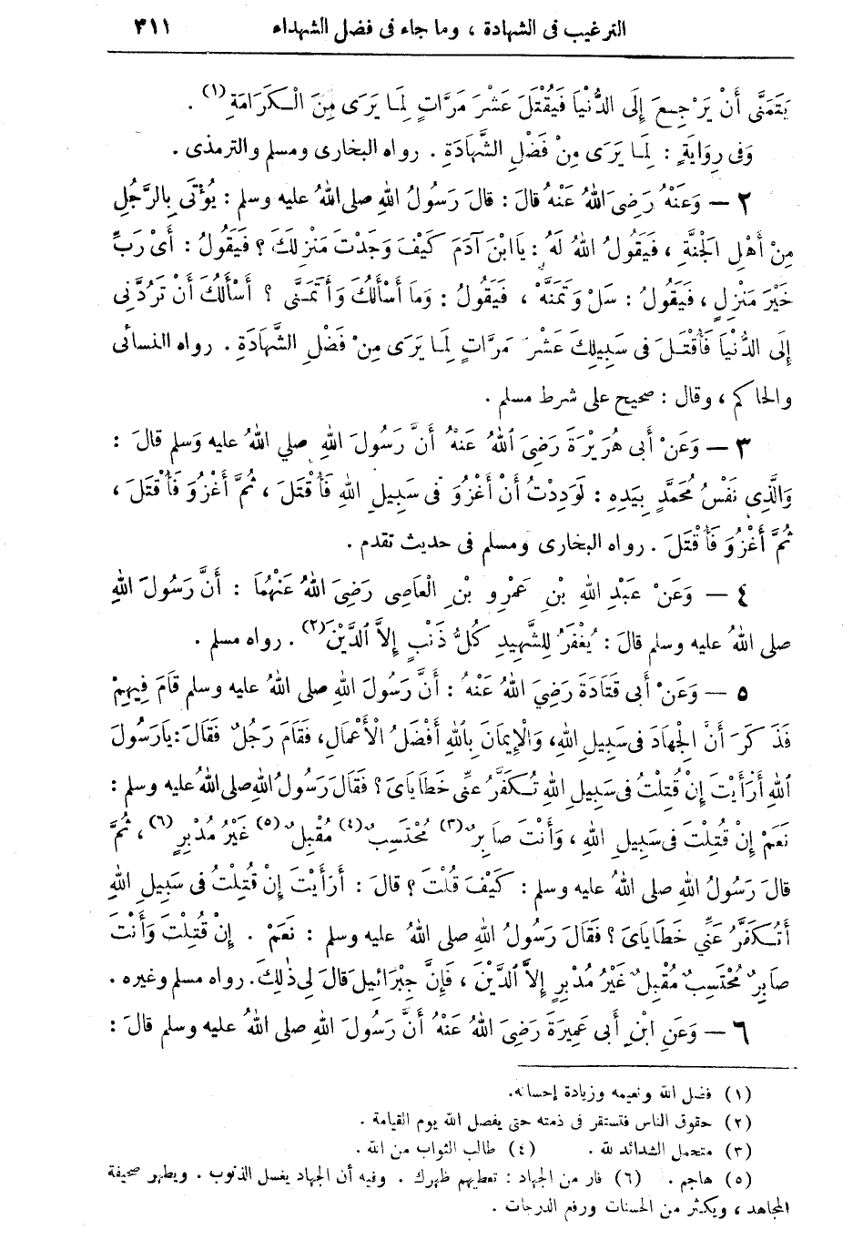 4 - وَعَن عبد الله بن عَمْرو بن العَاصِي رَضِي الله عَنْهُمَا أَن رَسُول الله صلى الله عَلَيْهِ وَسلم قَالَ يغْفر للشهيد كل ذَنْب إِلَّا الدّين (¬2)